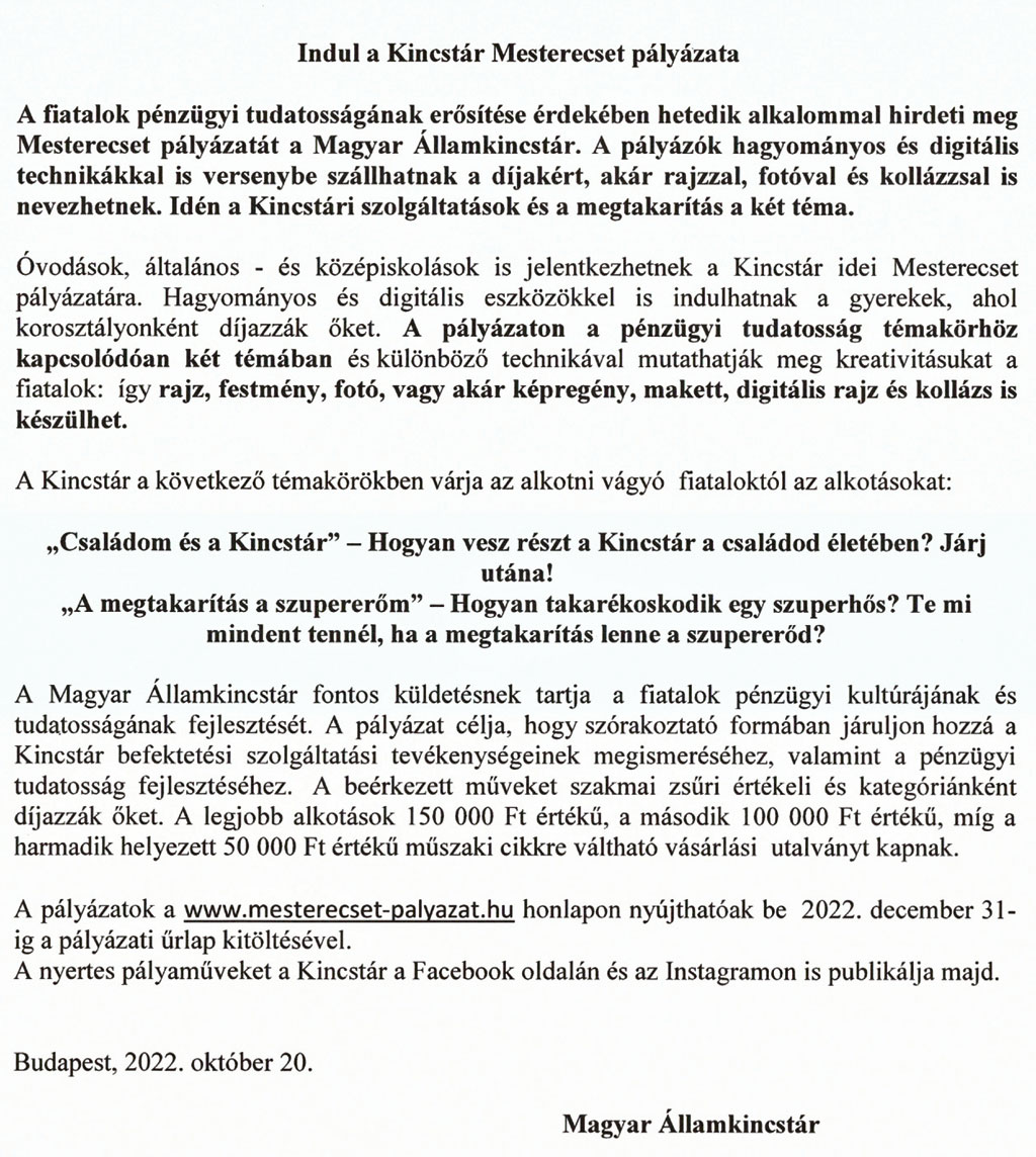 Mesterecset pályázat 2022.