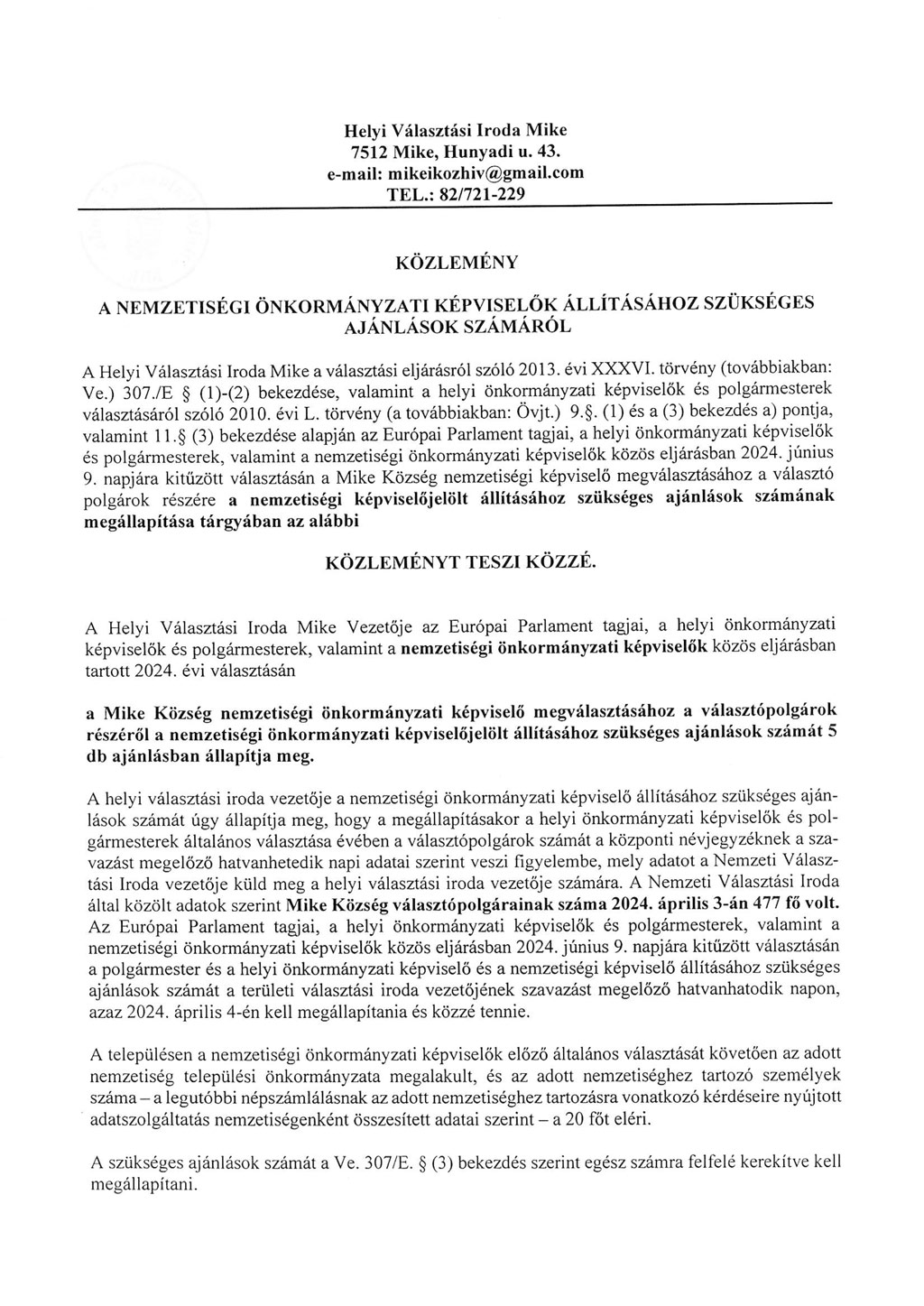 Választás 2024 - HVI közlemény